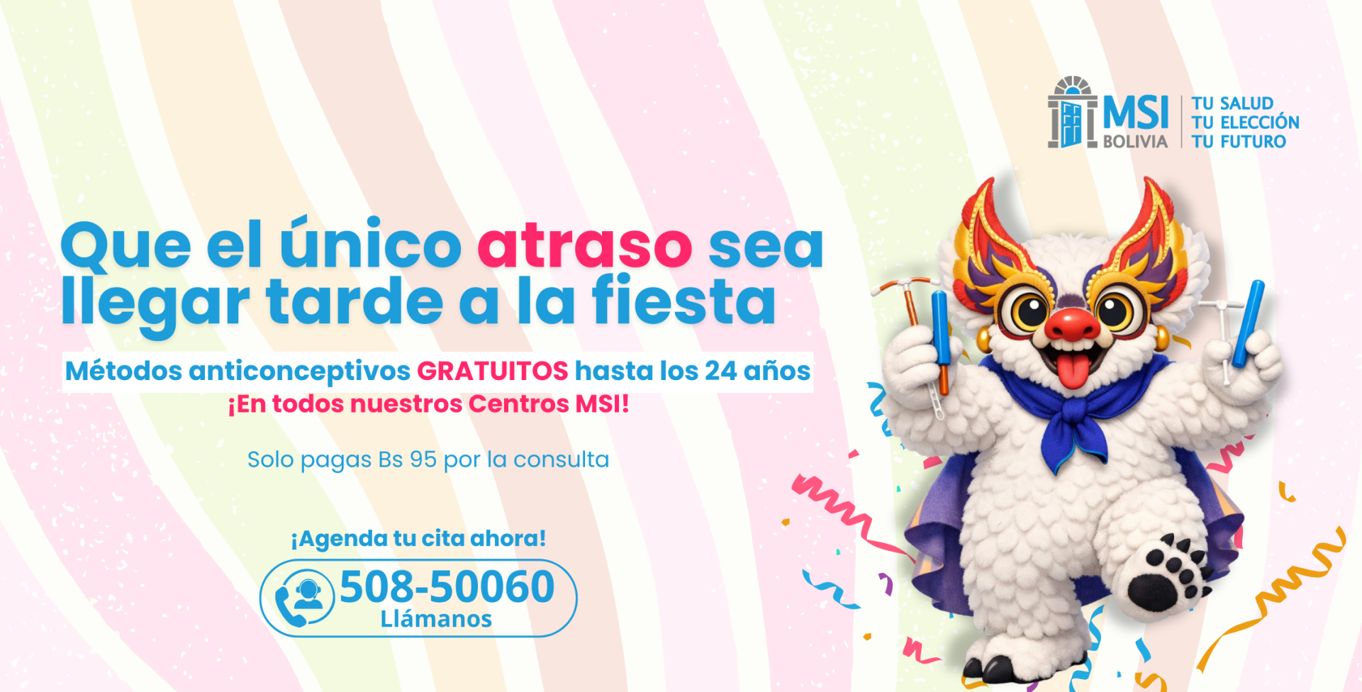 En MSI Bolivia estamos donde nos necesites: en nuestros Centros MSI, en los Consultorios MSI para jóvenes y adolescentes y a través de nuestras Unidades Móviles que recorren todo el país, siempre cerca de ti y de tu bienestar.